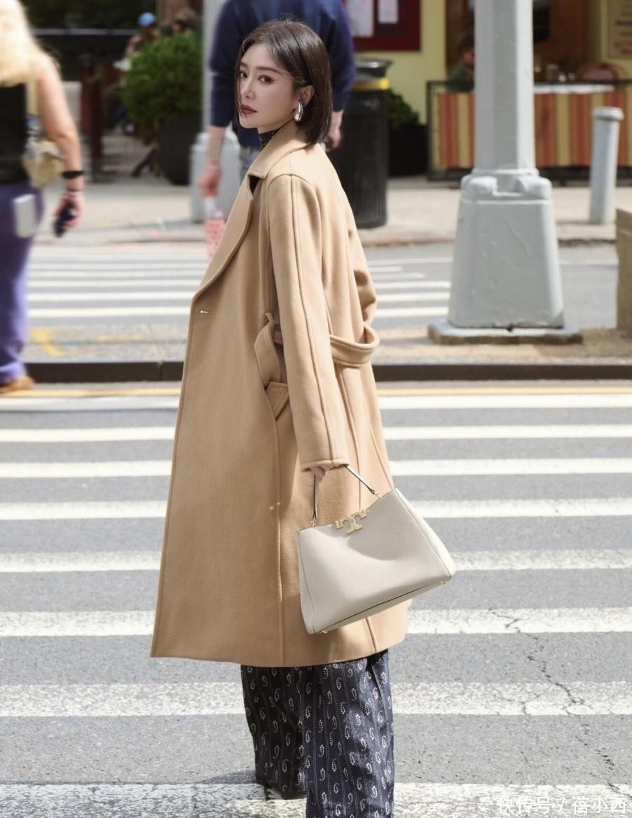 就想问问,有人不喜欢卡其色大衣吗?这个颜色常常出现在大衣这个单品上,基本每个时髦精都至少买过一件。身上这件大衣面料有厚度,如果想在冬季穿,那么还得再通过内搭来提高整体保暖度。